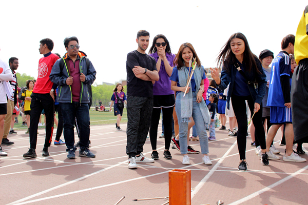 主办。学院不仅设置了跳远、投掷实心球、4×100米接力等常规比赛,还特别设计了“五人六足”、“盲人搬家”、“点球大战”等趣味性项目。此外还有投壶、踢毽子、放风筝、抖空竹、滚铁环等带有浓浓“中国风”的项目,旨在帮助同学们进一步了解中国,了解中国文化。