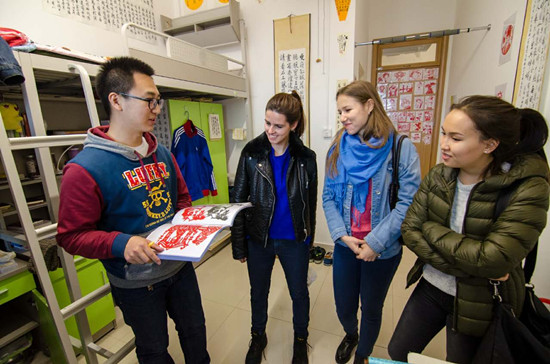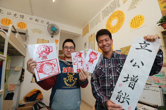 ,以前院里就有用中国元素装饰教室的传统。来到新校区后,学院更加鼓励学生自己动手打造各具特色的“文化寝室”。