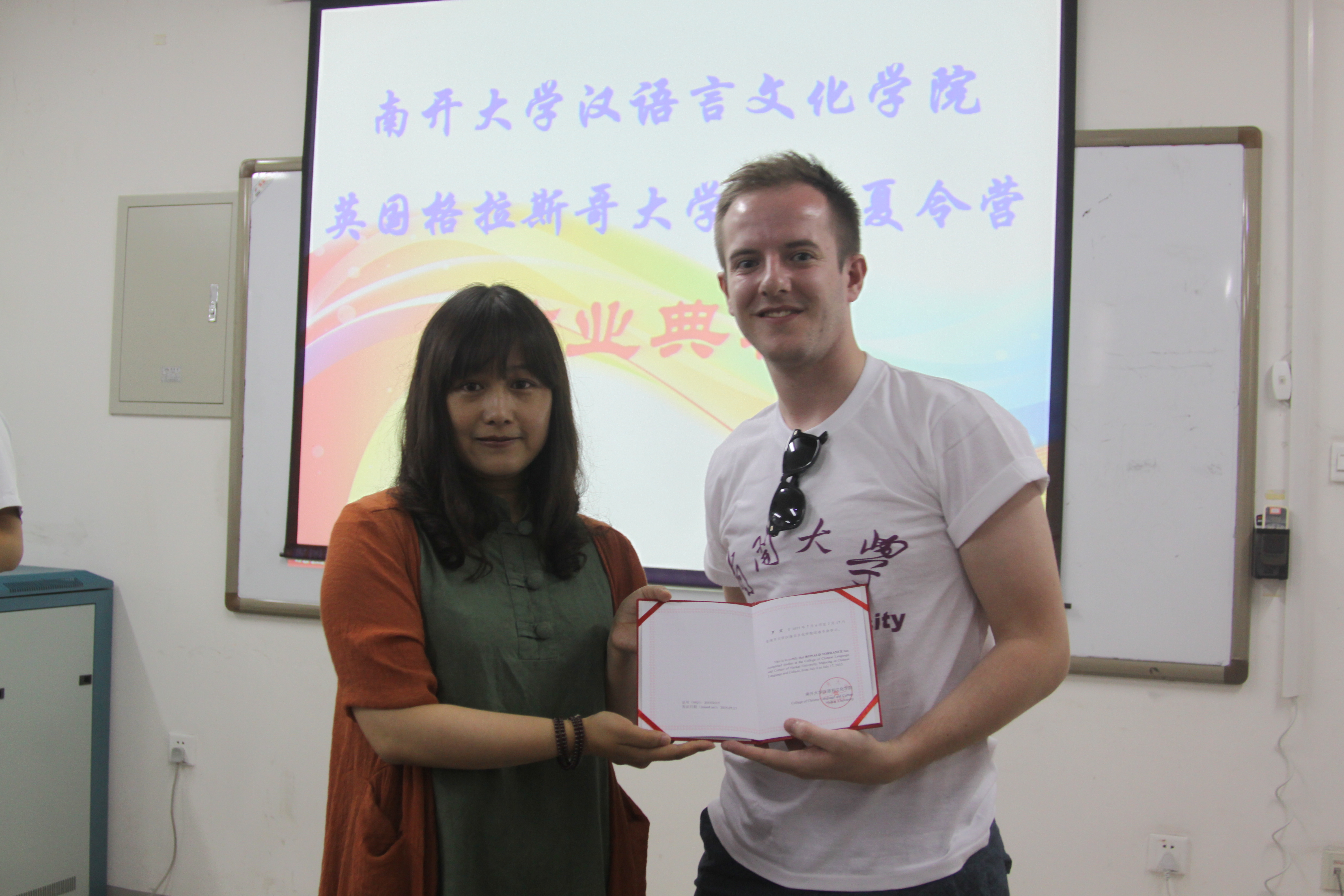 最后,梁晓萍和李莉为全体留学生颁发结业证书,全体师生一同合影留念,2015年格拉斯哥大学来华夏令营圆满落下帷幕。