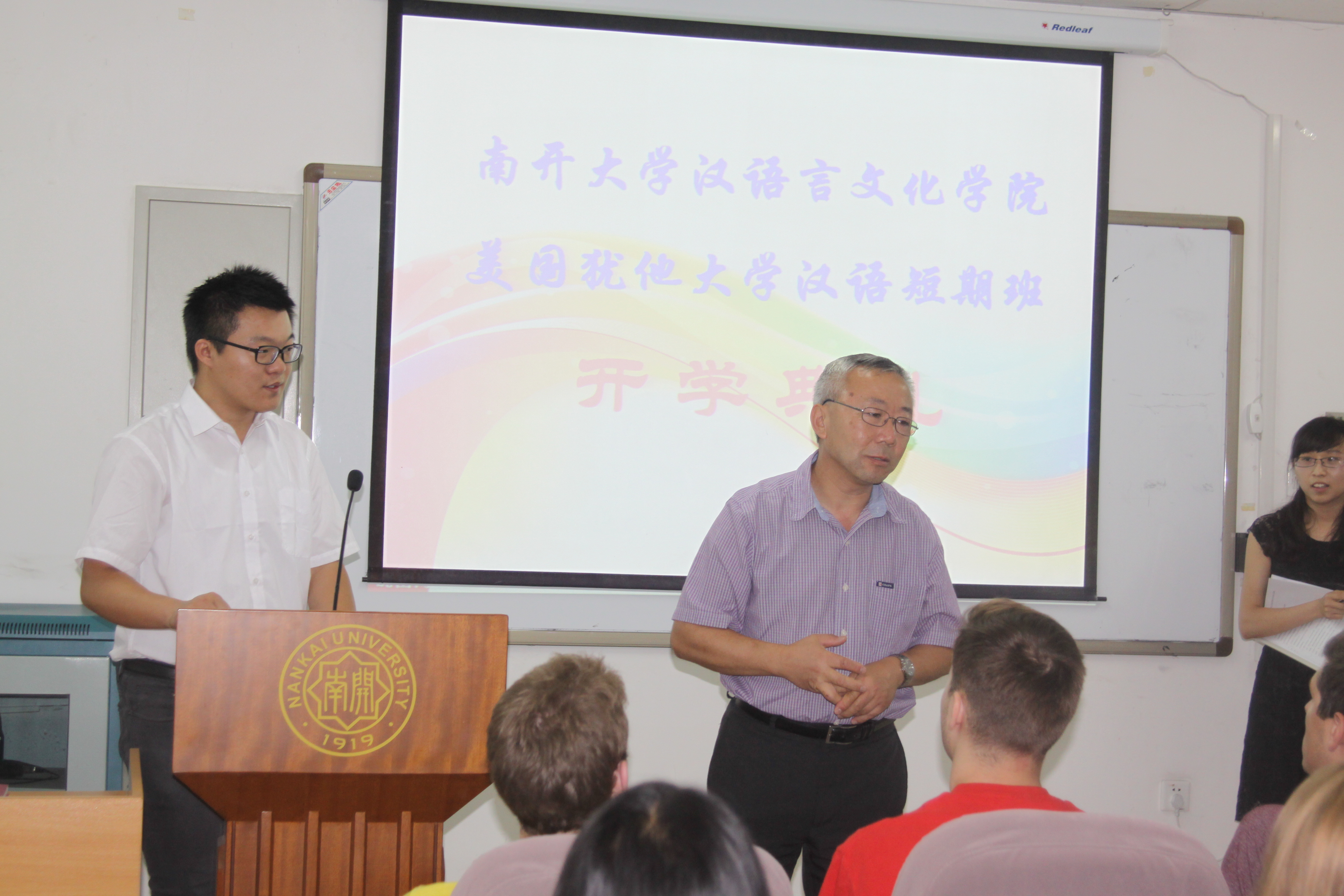 最后,犹他大学短期班美方领队吴伏生教授致辞。他表示,2015年是犹他大学汉语短期项目的第13年,通过双方的不懈努力,十几年来该项目从未间断过。他祝福同学们在南开大学享受美好的校园生活,并鼓励大家努力学习,多交中国朋友,多体验中国文化。
