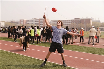 昨天,南开大学举办留学生运动会,来自日本、韩国、美国、俄罗斯等国家和地区的600多名留学生,从多个趣味运动项目中体验“中国味”。