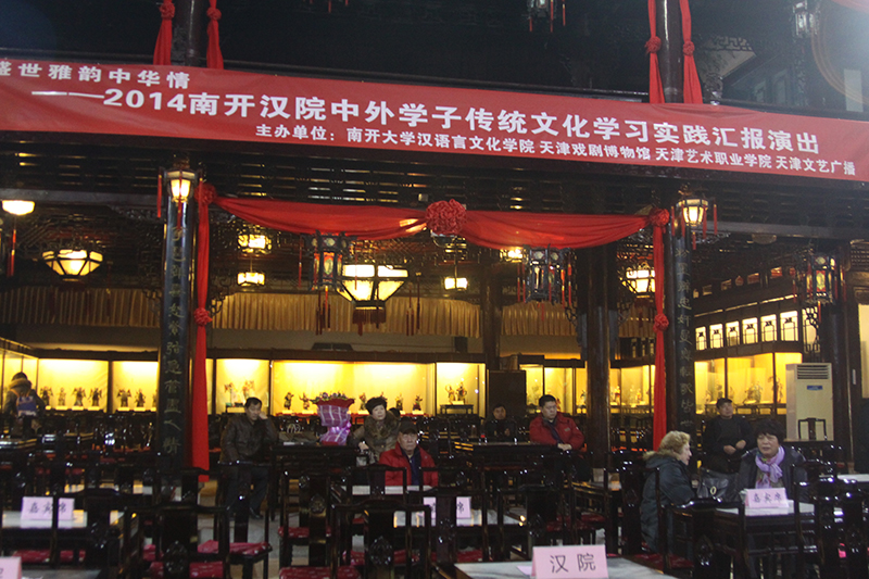 与天津戏剧博物馆、天津艺术职业学院等单位先后签订“中外学生文化实践基地协议”。通过开展一系列别开生面的活动,加深了青年学子对中华优秀传统文化的感知,本场演出也是对一年学习实践成果的汇报。同时由南开汉院教师开设的“中华传统艺术”课程,还在2014年入选了“中国大学素质教育优秀通选课”。本场演出也是这一年学习实践成果的汇报。