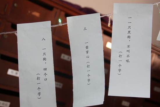 “一只狗,四个口,打一个字”“一箭穿心,打一个字”“鱼和羊是兄弟,打一个字”……趣味十足的猜灯谜让不少留学生跃跃欲试。“‘鱼和羊是兄弟’,就是两个要放在一起,左右一拼,答案就是鲜!”,来自乌克兰的娜吉娅兴奋地说出了答案,“猜灯谜真的很有意思,也让我觉得汉字更加神秘”。