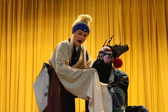 伴随着阵阵鼓声,廉颇和蔺相如迈着步子走向了舞台。一曲《将相和》,唱出了蔺相如的舍弃小我,也道出了廉颇的勇于改过,演员们的洪亮嗓音和精彩亮相赢得了全场喝彩。