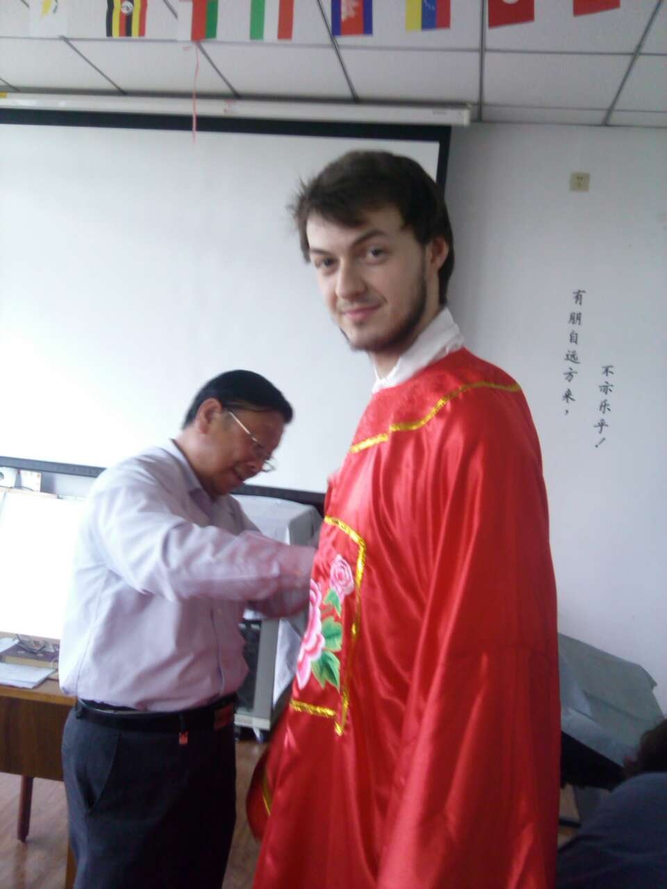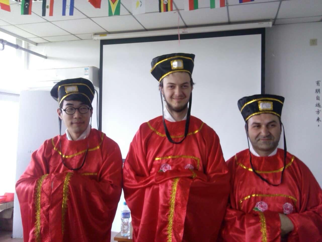 讲座结束之际,文庙博物馆的工作人员还为学生们演示春季祭孔大典的基本动作和流程。观看过展示后,在工作人员的指导下,留学生们还兴致勃勃地试穿祭孔服装,模仿祭孔动作。
