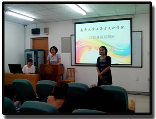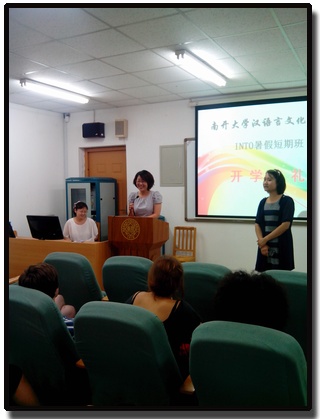在开学典礼上,王坚老师首先向来参加INTO暑假短期班的留学生们致欢迎辞,表示为了欢迎大家来到汉院学习汉语和了解中国文化,汉院不仅为他们开设了文化课和语言课,还设立了丰富多彩的文化体验课。之后,王坚老师还为大家揭晓了汉院为迎接本次INTO暑期培训班而精心准备的三份惊喜:第一个便是为配合文化体验课的开展而精心布置的富有中国传统文化特色的教室;第二个是大量的中国语伴;第三个是ABCD四个不同的班。留学生们将被分到这四个不同的班中,以方便大家沟通交流认识更多的朋友。随后,教师代表景老师致辞祝愿大家在南开过得开心并取得学习进步。至此,开学典礼在掌声中圆满结束。