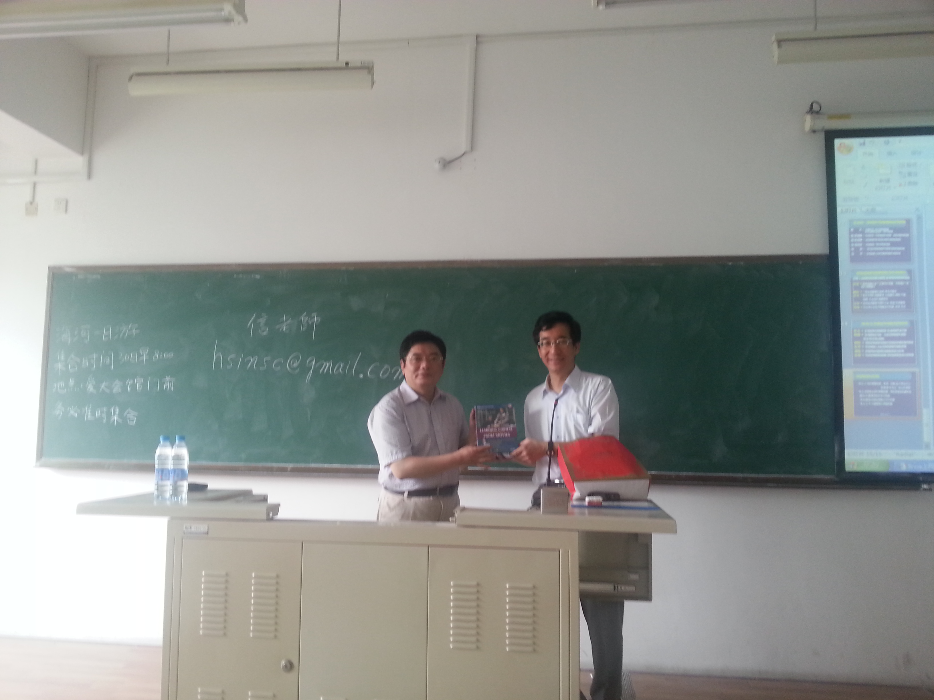 讲座结束后,信世昌教授向学院赠送了他的研究成果专著、出版刊物等宝贵研究资料,院长王立新也代表学院向信教授赠送了精心挑选的南开大学特色纪念品,并向信教授的到来表示衷心的感谢。