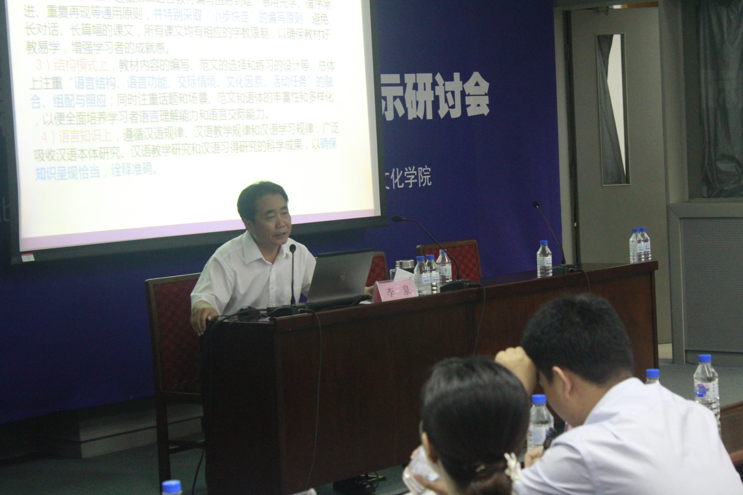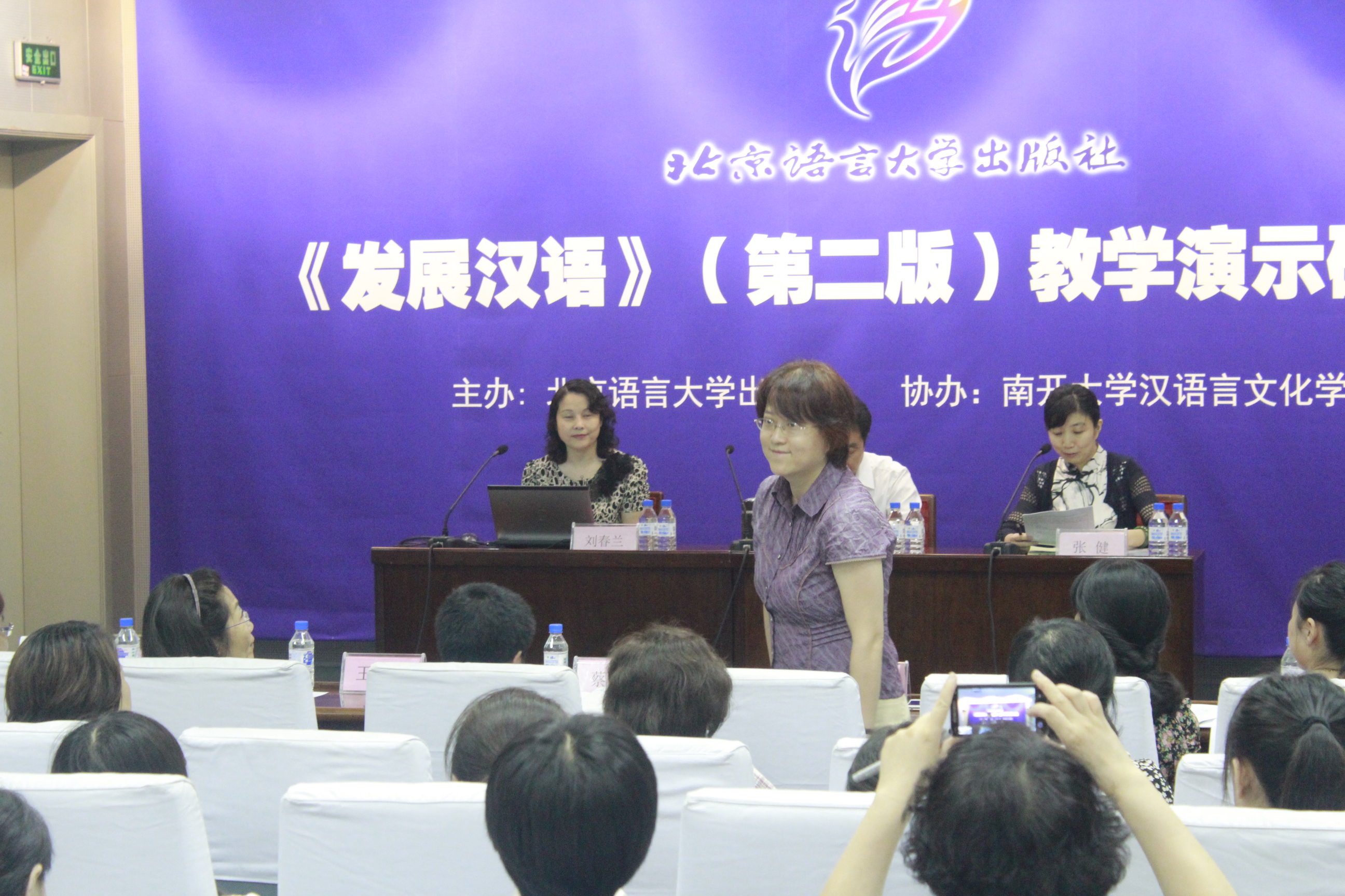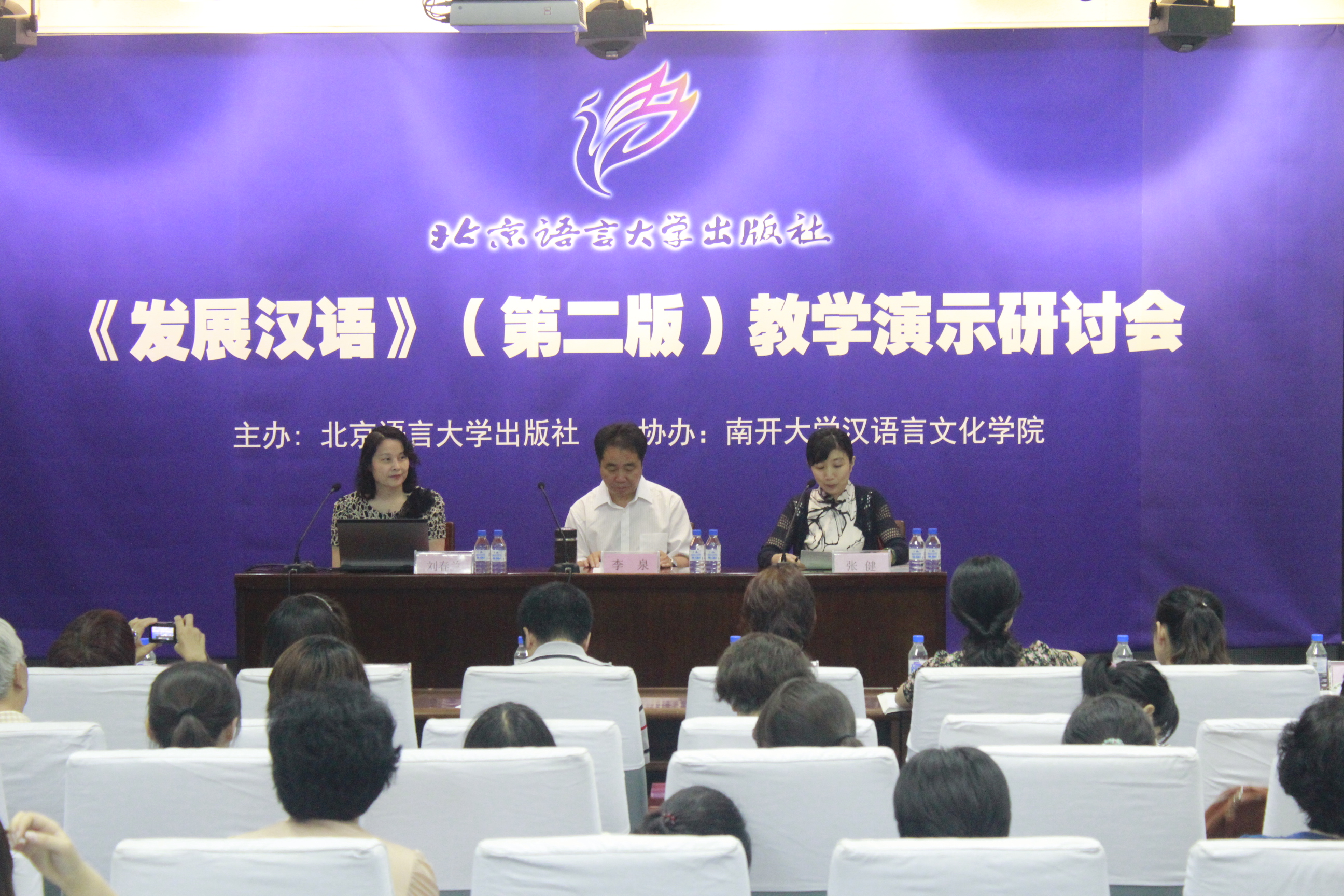 (通讯员 杨盼盼)6月29日,《发展汉语》(第二版)教学演示研讨会在我校生科楼报告厅成功举办。此次教学演示研讨会由北京语言大学出版社主办,90足球比分网 协办,天津市各高校的近80位老师应邀参加。 北京语言大学出版社总主编张健主持会议并介绍了莅临会议并将进行教学演示的各位老师,她对老师们的到来表示热烈欢迎,并对90足球比分app 的协作表示感谢。接着,90足球比分app 刘春兰副院长致辞。刘院长指出《发展汉语》的修订,使得这部以“发展”为核心理念的教材从编写理念到编写原则,从编写目标到内容、形式,都有了新的突破和提升,不仅体现了时代的精神,而且体现了精品意识,代表了汉语新教材的发展方向,是一部与时俱进的教材。她代表前来参会的老师们,感谢李泉教授率领的《发展汉语》(第二版)编写团队,感谢北语社为这部教材的出版和推广所做的专业化、创新性的工作。她说:“北语社通过教学演示研讨会在教材编写团队和一线的教材使用者之间搭起了一座桥梁,大家可以从不同的角度切入,分享各自的经验,这无疑是对汉语国际教育事业的重大贡献。参加会议的每一个人都会有所收获。” 研讨会分三个阶段进行。首先,《发展汉语》(第二版)主编、中国人民大学文学院李泉教授详细讲解了教材的编写与教学理念,并进行了精当的读写课教学演示。作为教材编写组的“领航者”,李泉教授对教材的介绍和讲解如数家珍、幽默风趣。他讲到,教材的设计与编写方法想要有新意,就必须有恰当、新颖的理论和理念的指导,具体说来,就是要坚持恰当、新颖的教学观、语言观、学生观、教法观、教材观。他举例说明了第二版教材对这些理念的坚持。李泉教授强调“语言学习是终生之事”,所以,《发展汉语》特别重视培养留学生的汉语学习兴趣和学习能力。 在李泉教授的精彩讲解之后,中国人民大学的幺书君、王淑红、蔡永强、傅由四位教师分别介绍并演示了自己负责编写的教材,此外,来自天津师范大学、中国民航管理干部学院、对外经济贸易大学、北京理工大学的四位优秀青年教师分享了她们关于教材使用及教学的宝贵经验。 教材介绍、教学演示、经验分享、专家点评、交流互动穿插进行、有机结合,让参会的老师和同学们对《发展汉语》(第二版)的理念与实践有了深入的了解,积累了更多有趣、实用的汉语教学经验,也加深了各个兄弟院校的联系与交流。