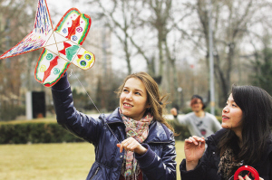 南开大学请来天津市风筝艺人教留学生制作和放飞竹篾风筝,感受中国传统文化。中国自古有清明节期间放飞风筝的习俗,既锻炼身体,又有良好寓意。