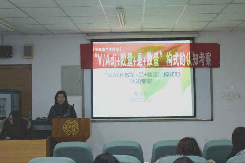 硕士生导师董淑慧为研究生们带来了为“‘V/Adj+数量+是+数量’构式的认知考察”的精彩报告。报告中,董老师不仅介绍了她最新的语法研究,更分享了选题、做研究的心得。90足球比分app
