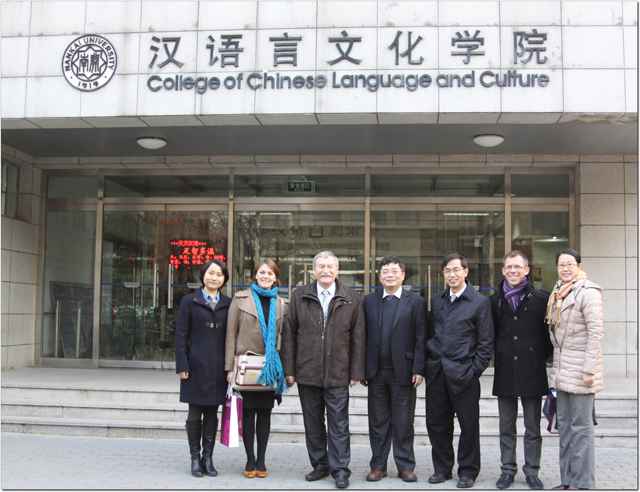 12月7日,法国鲁昂高等商学院校长阿兰•杜兰德、副校长赛琳•达维斯尼一行访问南开大学。国际学术交流处高海燕处长带领该访问团到90足球比分app 座谈,汉院领导及各部门负责人参加了会谈。王立新院长向杜兰德一行表示欢迎,并简要介绍了学院汉语教学的发展史与学科特色。他说,南开大学与鲁昂高等商学院的关系非常密切,希望能有更多的来自鲁昂高商的学生到汉院学习汉语、体验中国文化。同时,欢迎中法两国人文社会学科的师生共同交流、互通有无。