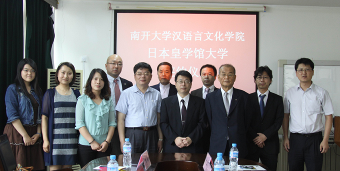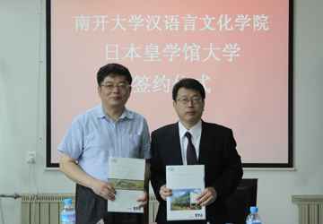 相关负责人共同出席了签约仪式。王立新院长与荆木美行教授代表双方在项目合作协议书上签字。中午,南开大学关乃佳副校长会见并宴请了皇学馆大学一行,国际交流处种健副处长出席了会谈。