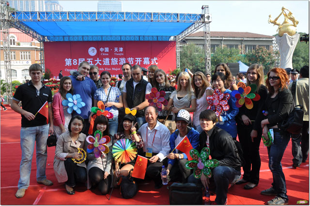 张老师参加了第八届中国•天津五大道旅游节开幕式,来自乌克兰基辅国际大学外事校长郝同财教授也参加了这次活动。在活动中,留学生们聆听了和平区旅游局领导们的欢迎辞,感受到了天津五大道居民们的热情,许多摄影爱好者也来到了开幕式现场,纷纷为留学生们拍照留念。在开幕式活动现场,来自俄罗斯、巴西、印度等国家的十余支表演团体为游客献上了热情奔放的各国特色节目,并沿重庆道——河北路——大理道——常德道——衡阳路——重庆道举行了盛大的巡游表演。据悉,本届旅游节会持续到10月4日,将推出五大道摄影展、五大道油画展、五大道名馆游等活动,同时也将举办五大道咖啡红酒节,感兴趣的留学生可以到五大道旅游景区游览,相信那里的景色一定会让您流连忘返。