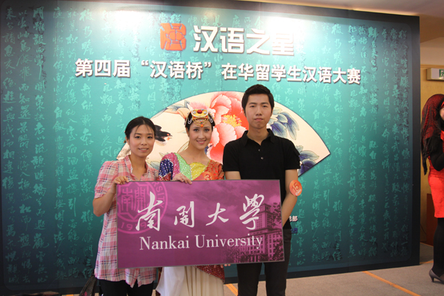 可心、任锦顺等五名同学作为南开大学的代表参加了此次比赛。经过笔试选拔,25名外国留学生成功进入面试环节,展现才艺,实力PK。比赛气氛热烈,评委的点评睿智、幽默,各国选手的表现也精彩纷呈,有高亢的歌声也有深情的吟诵,有异域风情的舞蹈也有激扬的长鼓,选手们都展示了自己的才华,展示了对中国、对汉语的热爱。