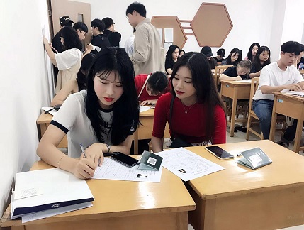 教学楼,学院的领导班子成员、相关教师和中外学生志愿者纷纷投入了迎新报到工作中。为保证报到迎新工作顺利进行,学院多次召开协调筹备会,保障此次国际学生迎新工作顺利进行。9月2日上午9点,陆续有新同学前来报到,他们一个个青春洋溢,面带笑容。整个迎新活动分为报到、交费、登记、面试4个步骤,新同学在志愿者的引导下顺利地完成了整个流程。对一些新同学提出的问题和面临的困难,老师们和志愿者也及时解答并提供帮助,使每一位同学都能顺利完成报到。