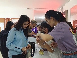 中秋节吃月饼是中国人的传统习俗,为了让广大留学生切身体会这一饮食文化,活动现场,汉院为留学生准备了不同口味的月饼,邀请他们品尝,留学生对这一传统美食赞不绝口。随后,在志愿者的帮助下,留学生自由组队,制作节日花灯,并为自己的花灯留下独具中国意味的名字。无论是嫦娥奔月的图案,还是工艺精美的中国结,抑或是极具中国特色的桂花和牡丹,与会留学生以此为媒,置身于中华传统文化的浓烈氛围当中,感受中华民族深厚的历史文化底蕴。
