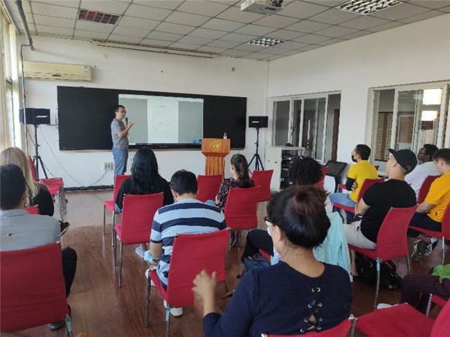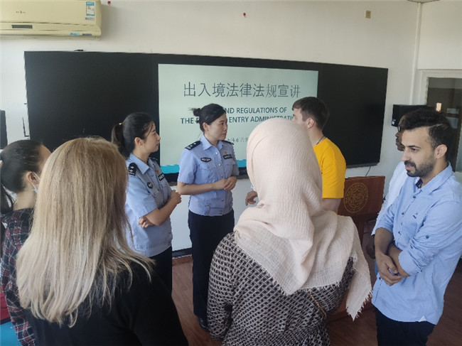 天津市公安局出入境管理局刘倩妤警官,就在华法律法规为新生提供解答。学校保卫处干部通过校园安全常识及真实案例讲解,向在场的国际学生讲述了南开大学的校园安全知识;教务处、研工部老师分别对南开大学本科生、研究生学则进行了讲解;党委学工部学生心理健康中心老师与国际学生分享了如何克服应对在华在校期间,因文化差异、环境不适、学习压力等产生一定的心理问题,并提供了学校学生心理健康中心等有效求助途径;党委宣传部干部与校史宣讲团成员以轻松愉悦的方式向国际学生讲述了南开的百年校史;国际学术交流处副处长欧迎希以“和新生谈谈心”为主题,从语言、融入、学习和未来四个角度与学生交流,帮助学生尽快适应学校生活。欧迎希还就防疫工作进行动员,希望同学们在防疫常态化工作期间,遵守防疫规定,避免跨城市、地区的外出,尽量避免人多的场所,进出校园提前申请。