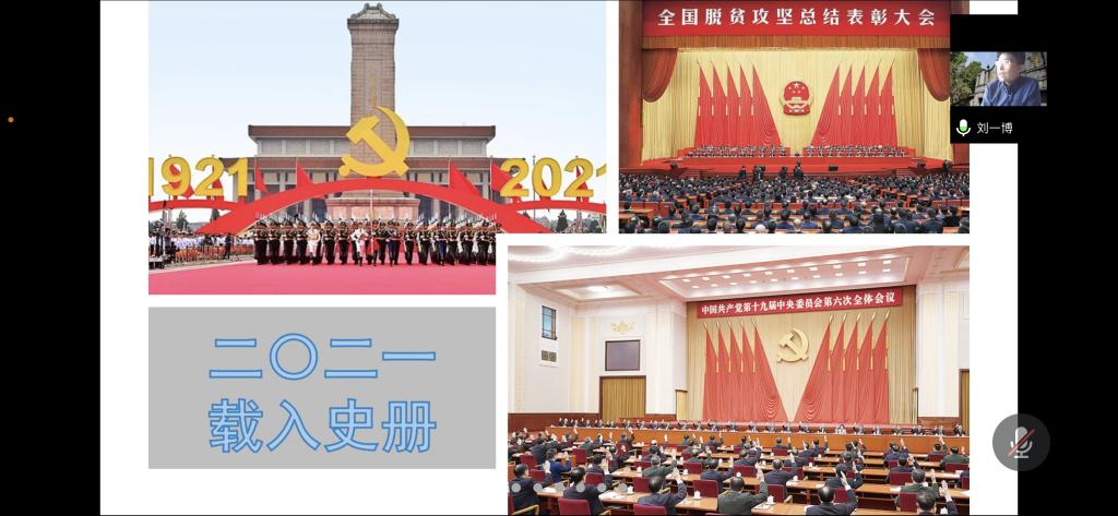刘一博分别从把握“两个大局”、坚定“四个自信”和讲好中国故事三个角度,说明中国和社会主义互为例证,表明走中国特色社会主义道路是中国人民的历史选择,是实现中国梦的必由之路。刘一博讲到:中国作为百年未有之大变局之最大变量,在实现中华民族伟大复兴的战略全局任务中已经向前迈进一大步,中国没有辜负社会主义。2021年十九届六中全会宣布中国如期打赢脱贫攻坚战,全面建成小康社会、实现第一个百年奋斗目标,开启了全面建设社会主义现代化国家的新征程。