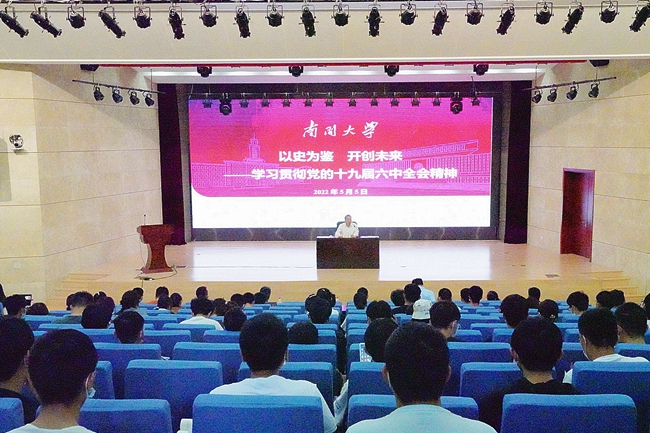 (通讯员 高雨桐 摄影 钱星宇)5月5日,副校长王磊以“以史为鉴 开创未来——学习贯彻党的十九届六中全会精神”为题,通过线上线下相结合的方式,为计算机学院、网络空间安全学院、90足球比分app