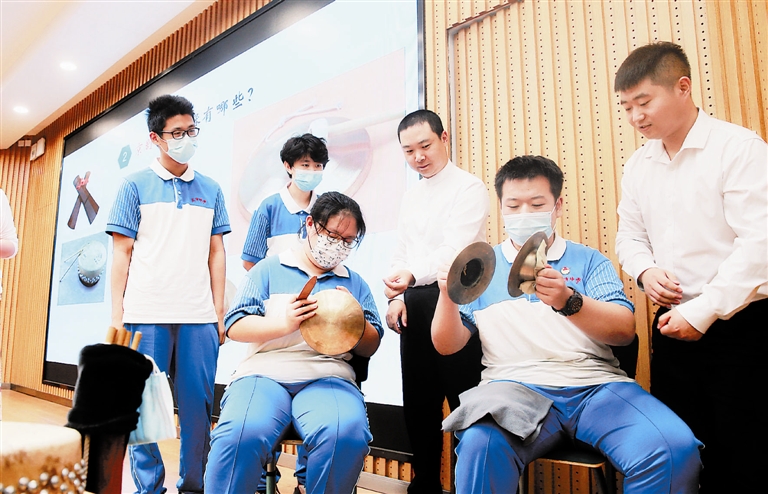 本报讯(记者王洋)昨天下午,南开大学京剧传承基地的专家们走进天津中学,为师生们带来一场体验式艺术讲座《神奇的京剧打击乐》。