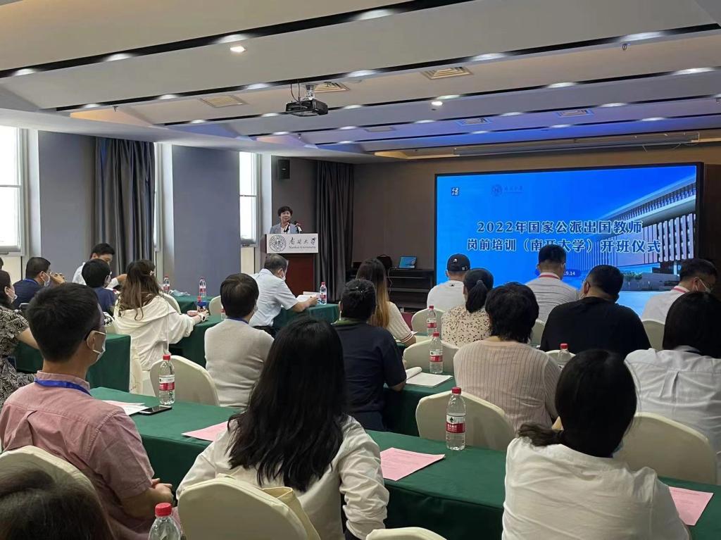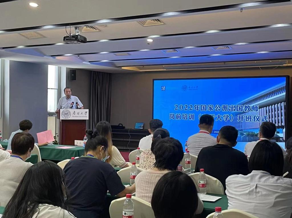 南开新闻网讯(通讯员 孙伟)914日,2022年国家公派出国教师岗前线下培训(南开大学)举行开班仪式。此次培训由教育部中外语言交流合作中心主办,南开大学国际教育学院承办。南开大学副校长王磊出席开班仪式并讲话,国际教育学院有关负责人、以及来自全国9省市自治区39所大中小学的55名国家公派出国教师参加本次培训。