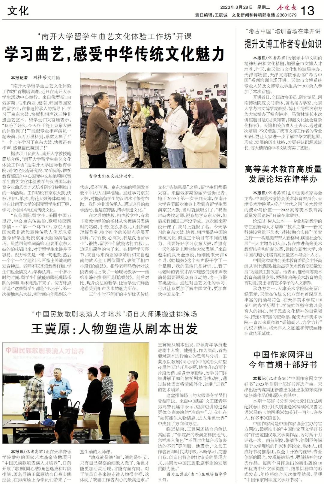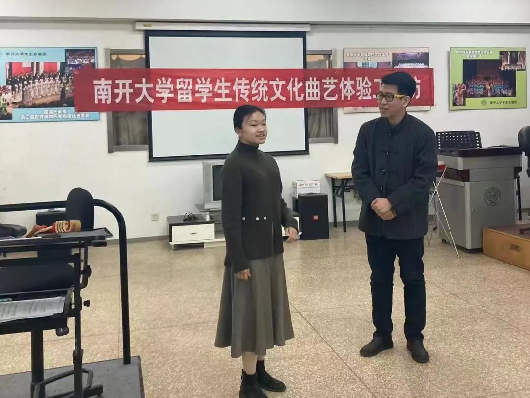该项目负责人,南开大学教授鲍震培介绍,“南开大学留学生曲艺文化体验工作坊”是南开大学国际教育学院、跨文化交流研究院、文学院等,依托教育部语合中心国际中文基地项目《留学生曲艺文化体验教学与汉语国际教育专业曲艺类才艺培养研究》特别推出的一项活动。工作坊设有京东大鼓、快板、相声、单弦、梅花大鼓等体验项目,旨在让南开大学的国际留学生了解、学习、体验中华优秀传统文化。