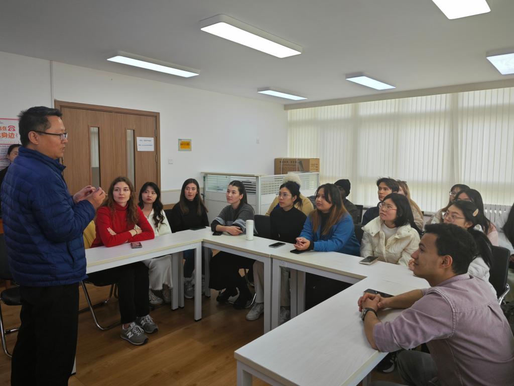 来自其他国家的留学生和汉语进修生们也分享了各自在中国学习与生活的美好体验,以及对投入国际中文教育事业、推动中华文化传播的热情与愿望。王红厂表达了对同学们在华生活的关心,并亲切地回应同学们的发言。师生进一步展开交流,现场气氛轻松热烈,掌声连连。