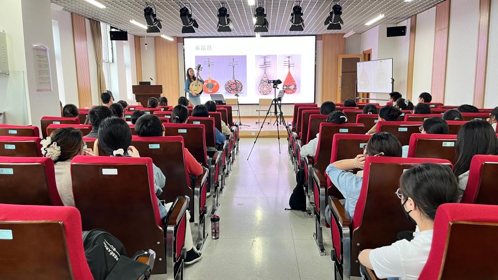 讲座最后,官微和刘可两位老师共同演奏的《梅花三弄》则在“文武”结合中将课堂推向高潮,乐曲的优美与力量完美交融,展现了中华民族乐器的无穷魅力。